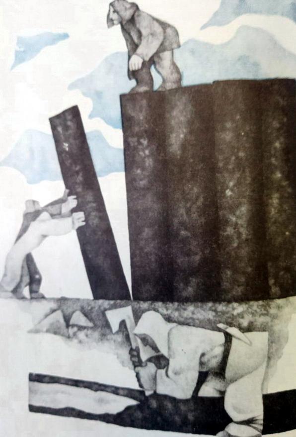 Тут вышел ему навстречу незнакомец и почтительно приветствовал его. Повели они беседу, и герой узнал, что гость не кто-нибудь, а знаменитый градостроитель Олев-сын. Подружились они между собой и стали совет держать, как построить могучие крепости, чтобы укрыть народ от врага. Вложение 1046 Вступили они в уговор и принялись за работу. Олев-сын взялся ставить камни и вбивать сваи, а Калевипоэг стал доставлять все необходимое. Неустанно витязь Калев Свежий тёс носил для стройки, За Чудь-озеро ходил он И дубов валил без счёта В вековой дубраве Таары. День и ночь таскал он камни: Скалы с берега морского, Валуны с лугов широких, Плиты из каменоломен. Что же стало с сёстрами-красавицами? Алев-сын взял в жёны младшую сестру, Сулев-сын — старшую. Среднюю же похитил злой Туслар. Алев-сын и Сулев-сын отправились вызволять ее из когтей коварного колдуна. Как только увидел Туслар, что они приближаются, бросил он им под ноги широкое озеро. Но у Алев-сына был с собой волшебный прутик. — Мост, раскинься над водой! — воскликнул он, взмахнув прутиком. В тот же миг вырос мост, и герои ринулись к терему Туслара. Они убили злого колдуна и привели сестрицу домой. А потом Олев-сын взял её себе в жёны. Так все три сестры-красавицы стали подругами доблестных мужей. |