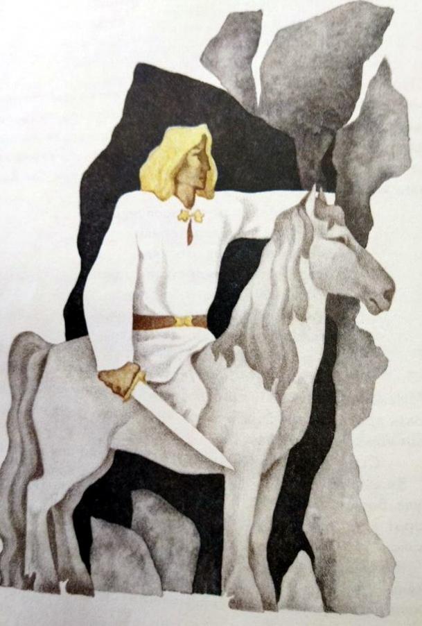 Наконец, решили они послать Калевипоэга сторожить врата ада. Усадили героя на белого коня и подвели к каменным воротам преисподней.