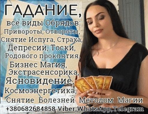 Выполню сеанс Онлайн Гадания, на Оракулах, Рунах, Фото, Таро, Ленорман, Просмотрю вашу ситуацию, сделаю диагностику на наличие порчи, загляну в будущее, Помогу изменить: Настоящее и будущее, Сниму порчу, сглаз, проклятие, венец безбрачия, сильная любовная магия, Семейные и Однополые Привороты, Обряды на фарт, удачу, клиентов, деньги и не только тел.+380682684858 (Viber,WhatsApp,Telegram) ********gadanie.org