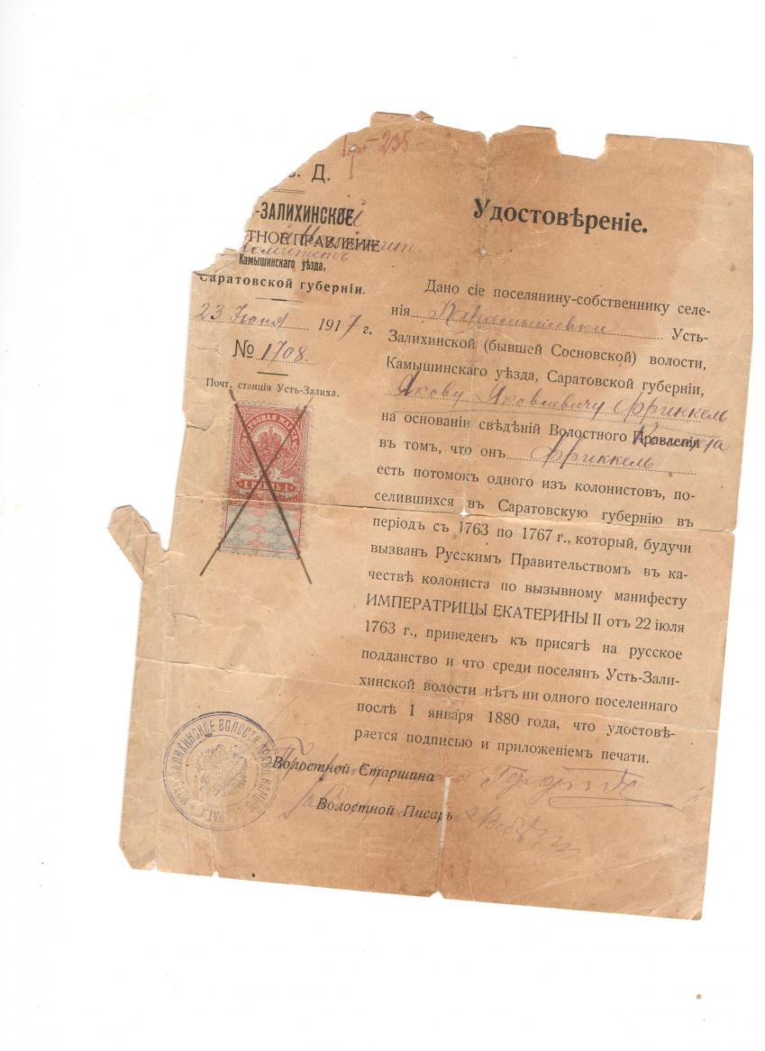 Добрый день!! помогите,те ,кто знает,с чего вообще начинать поиски??!!!! мне известно,что мой прапрадед проживал в Голом Карамыше.Сохранился и этот документ.Было бы очень интересно найти истоки,на каком судне и откуда были родом. Мой прапрадед Фриккель Яков Яковлевич. Вот документ,выдан ему.